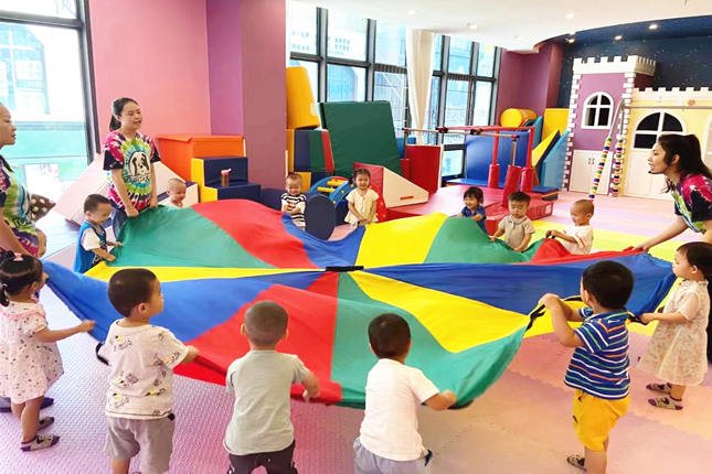 我們的中心由美國著名設計師精心設計,卡通式、情景化環(huán)境,可以在為不同月齡的寶寶帶來刺激的體驗的同時保證他們的安全。豐富多彩的軟包設計,使教具更加舒適和容易清潔。不論是只會爬的嬰兒、蹣跚學步的幼兒,還是學齡前兒童都可以在此玩耍。